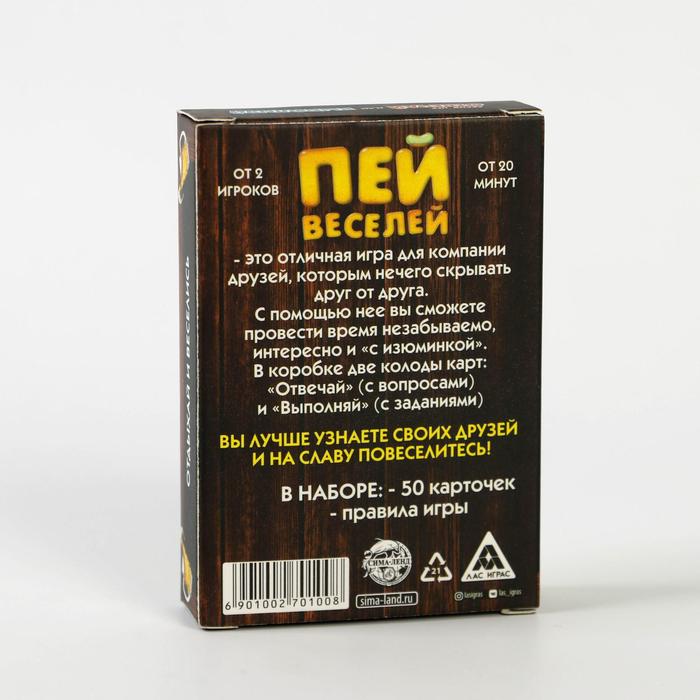 Купить игра для компании "пей веселей" 50 карт от 180 руб. с доставкой до пункта выдачи в Бронницах. Интернет магазин ДекаМаркет. Оплата при получении.