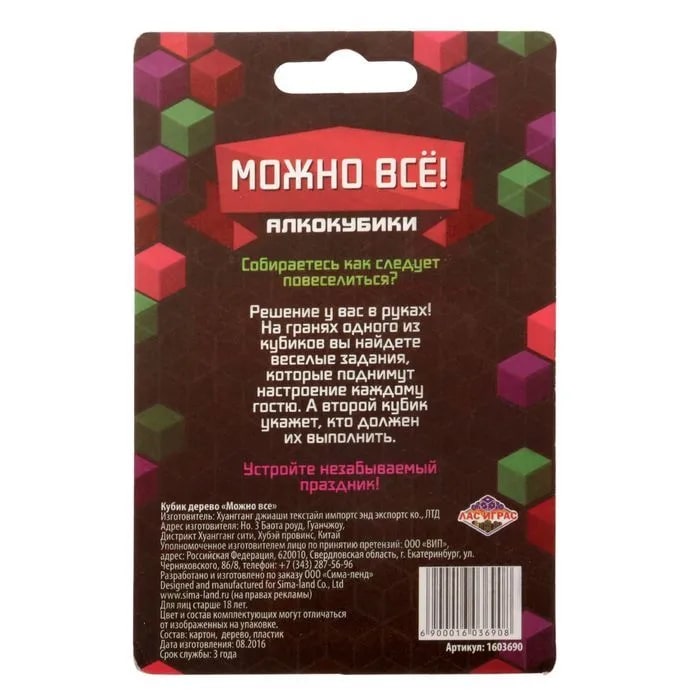 Купить кубик "можно все", алкокубики для принятия решений от 60 руб. с доставкой до пункта выдачи в Бронницах. Интернет магазин ДекаМаркет. Оплата при получении.